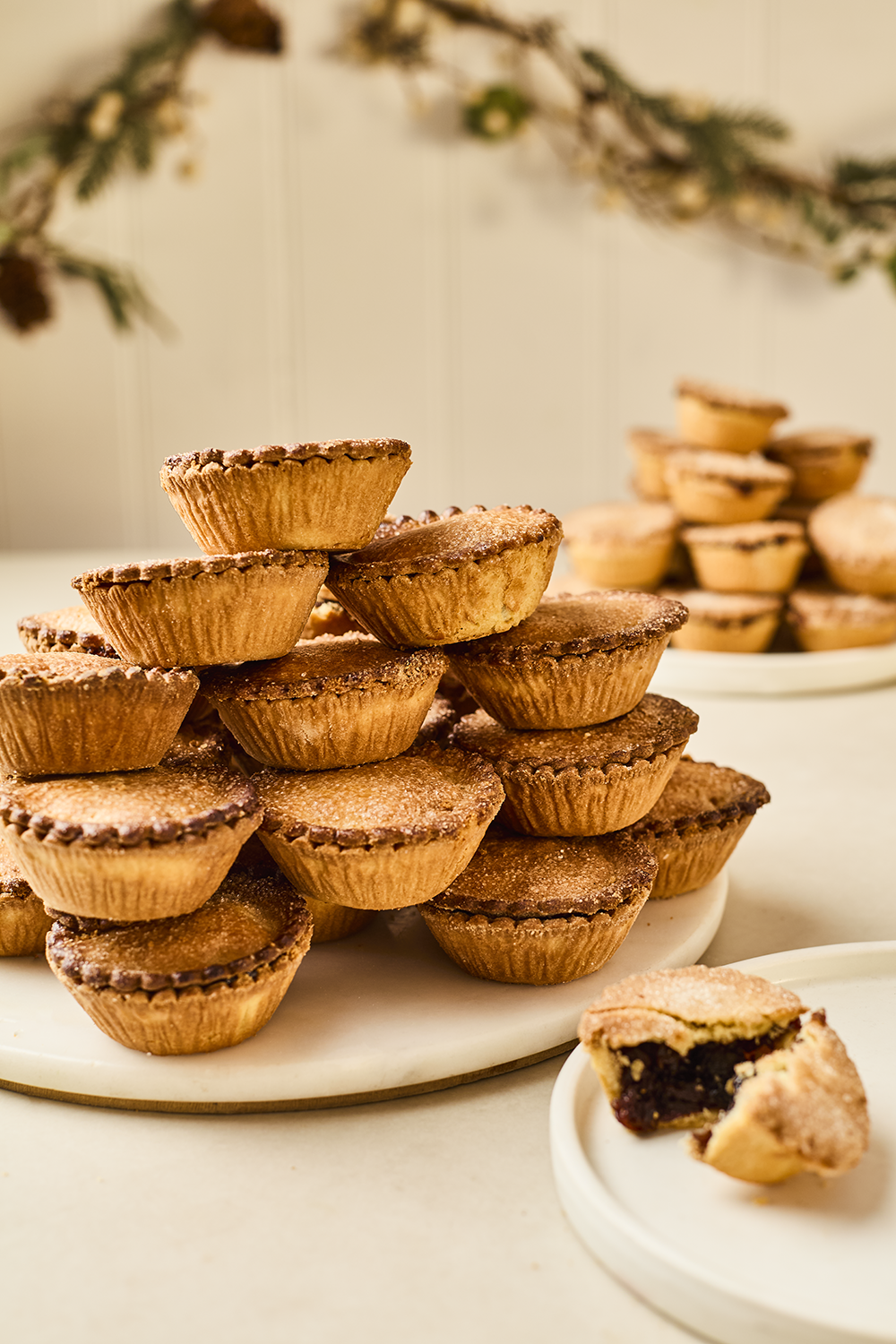Juicy sultanas, cranberries, and figs are soaked in calvados and folded into rich mincemeat, then baked beneath a soft almond sponge and topped with flaked almonds.