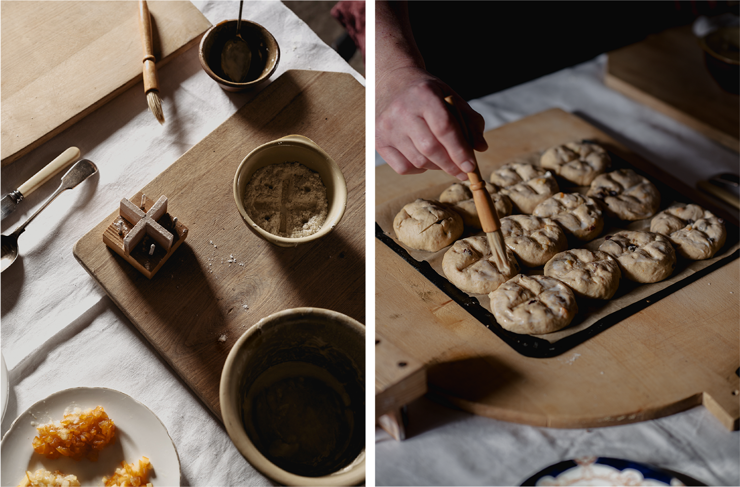 Those early buns were spiced, enriched and marked with a cross, becoming associated with Easter and the arrival of spring. Over time the recipes evolved, but the idea remained the same: a lightly sweet, fragrant bun filled with fruit and warming spices.